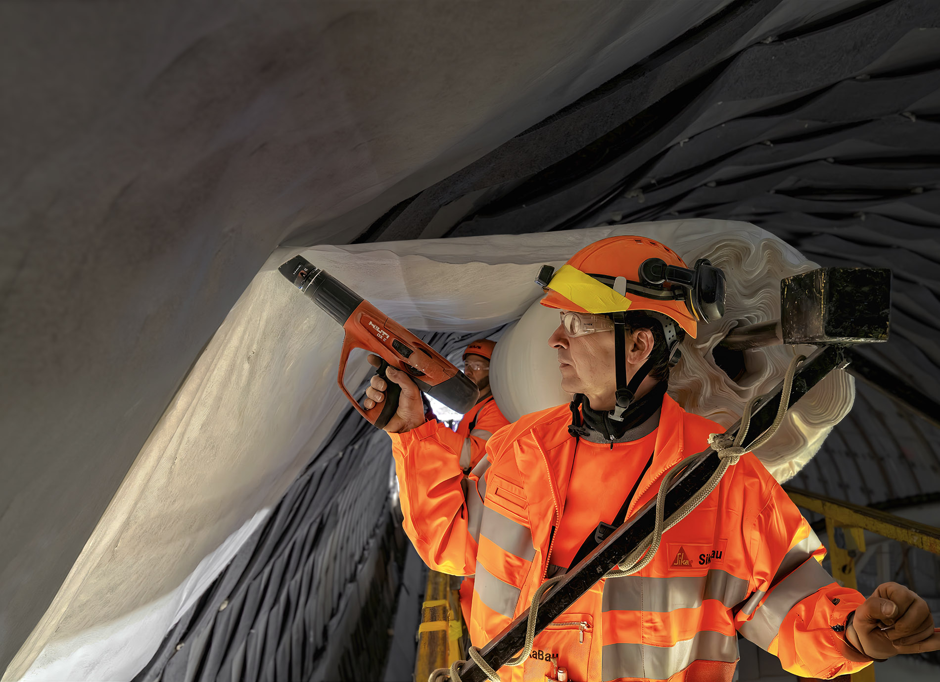 Man|Working|Waterproofing| Tunnel|Switzerland